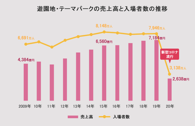 コロナの影響を強く受け2020年の遊園地・テーマパークの総売上高は