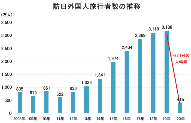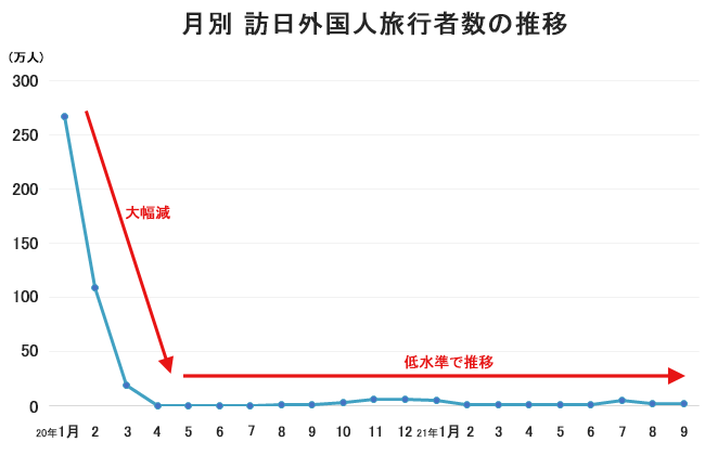 コロナの影響で訪日外国人旅行者や日本人の海外旅行者数が大幅に減少し旅行業界は甚大な被害を受けました。