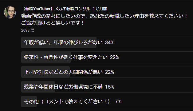 またその転職理由をもとにおすすめのやり方についても解説をしていきたいと思います。