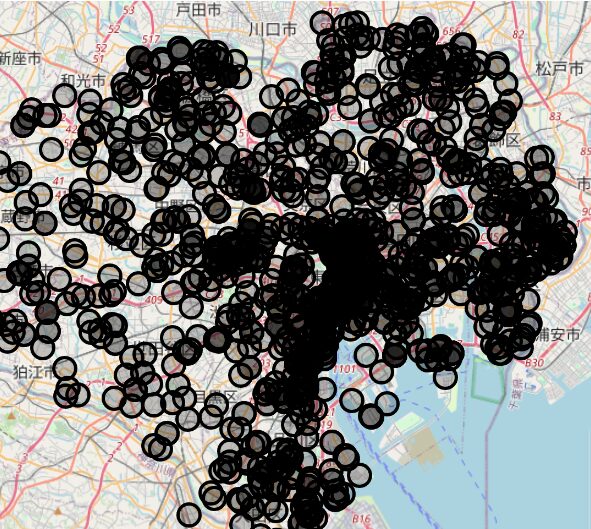 例えば東京都でブラック企業で検索した場合、1592件も出てきてしまうため地図表記だとこの様に現れます。もちろん地図表記だけでなく企業名検索もできますが、地図表記にすることでビジュアル的にこんなにも違反や処分を受けている企業が多いのだと実感できます。