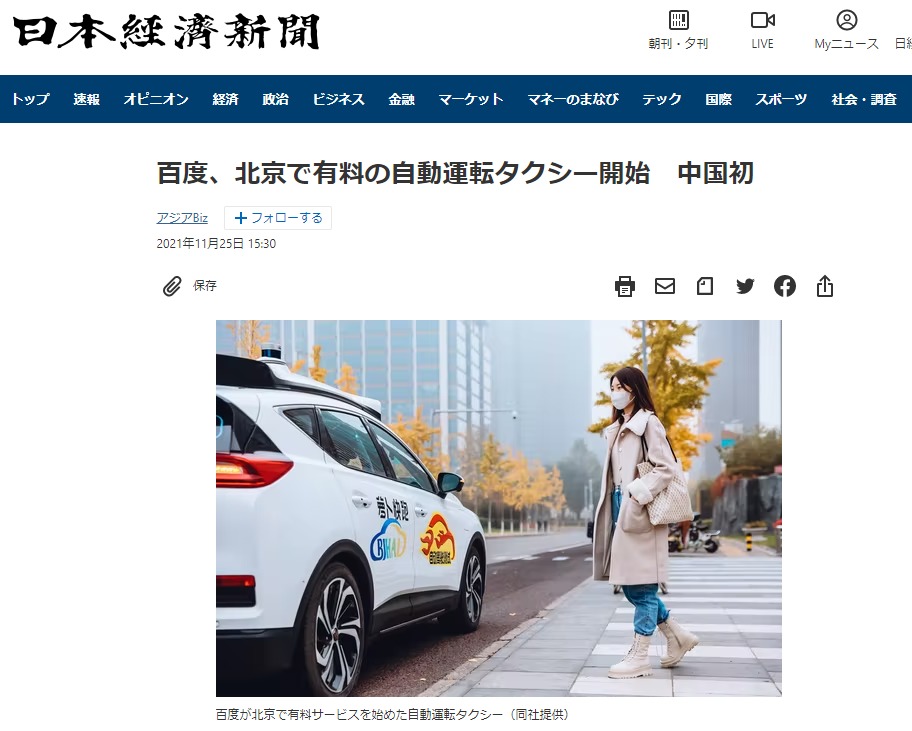 実際に中国では既に一部の地域では自動運転タクシーは実現しています。