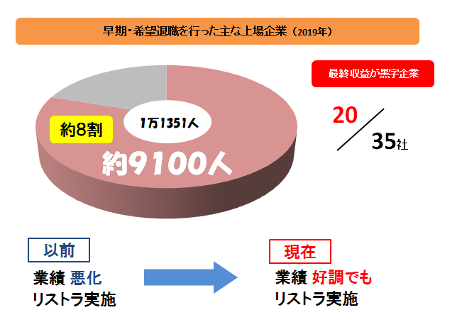 リストラをしている企業35社のうち20社が黒字企業となります。